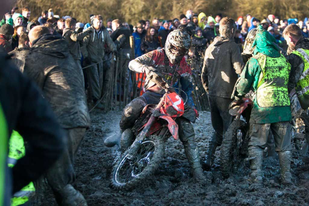 A traditional scramble, the race is held over 20 laps or 1 hour, where the riders are faced with freezing cold conditions as well as deep mud, and four stream crossings.
